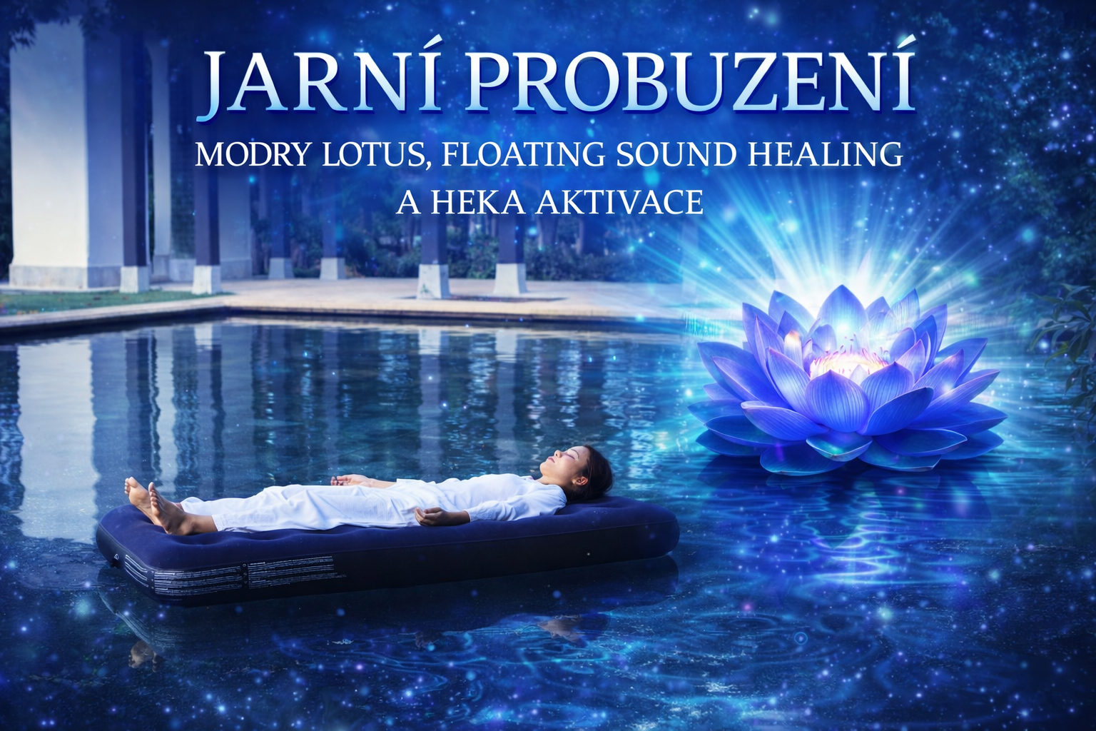 Po tomto úvodním naladění se společně ponoříme do floating sound healingu – hluboké relaxační lázně ve zvuku a vibracích. Tělo při této jedinečné zkušenosti spočívá plovoucí podložce na vodní hladině, kde se přirozeně uvolňuje a nechává se nadnášet vodou. Harmonizující tóny nástrojů a jemné vibrace zvuku prostupují tělem a působí na buněčné úrovni. Zvuk, voda a prostor ticha vytvářejí jedinečnou kombinaci, která podporuje hlubokou regeneraci, uvolnění a návrat k přirozené harmonii.